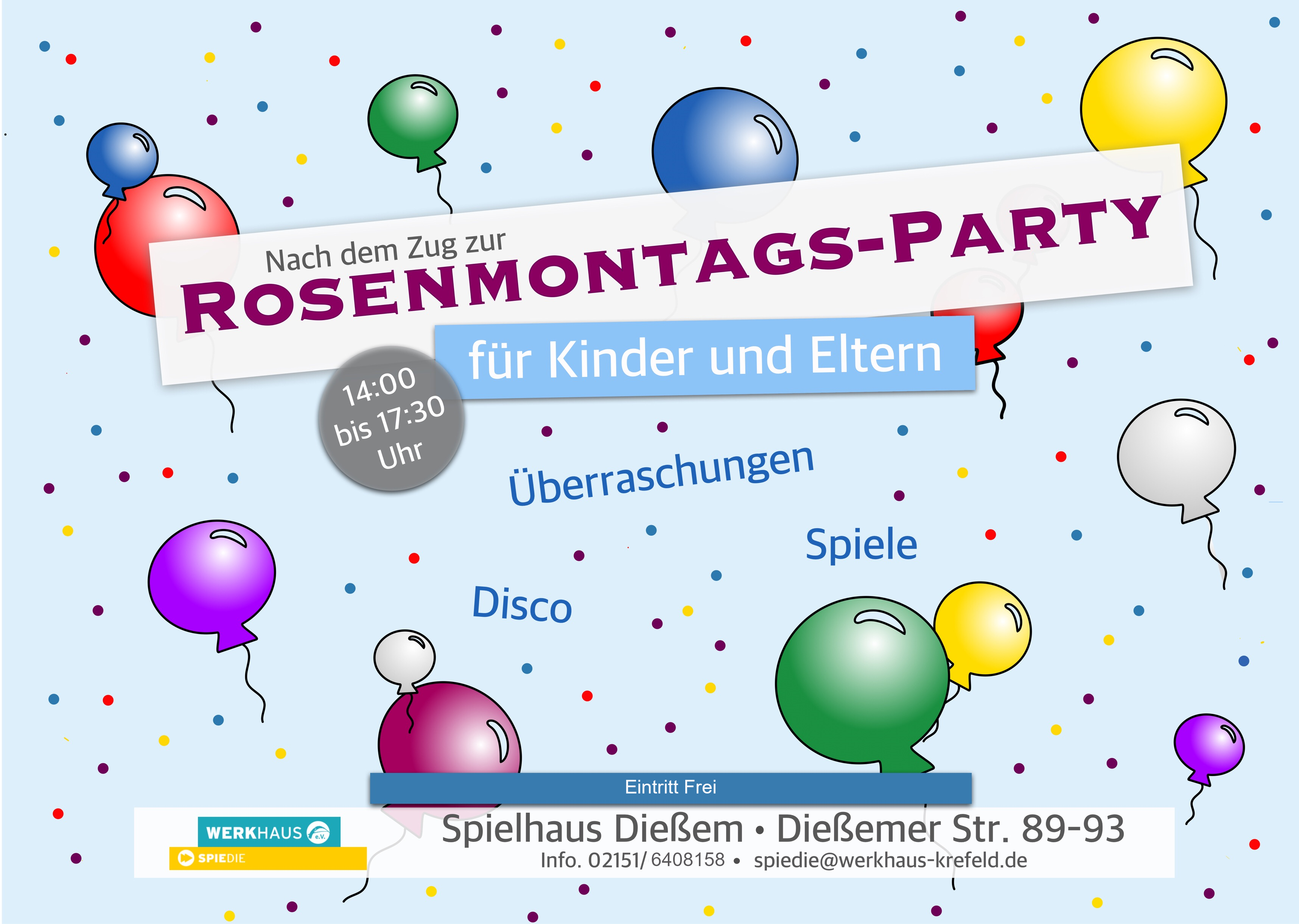 Also kommt nach dem Rosenmontagszug gerne vorbei und lasst uns gemeinsam bei Musik und Spielaktionen für die Kinder, Karneval feiern!